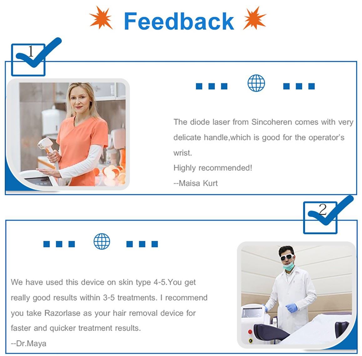 Basing on the selective light absorption theory, we let the diode laser generated by laser hair removal machine pass through the skin surface and penetrate the hair follicles by adjusting the wavelength, energy, and the pulse width to realize the hair removal purpose. In the hair follicle and hair shaft, there are plentiful melanin spreading between the follicle matrix and moving to the hair shaft structure. Once the melanin has absorbed the energy of laser, it will show a sharp rise in temperature and lead to destroy upon the surrounding follicle tissue. In this way, the unwanted hair will be removed completely.