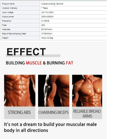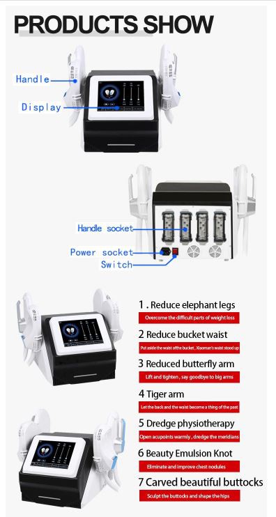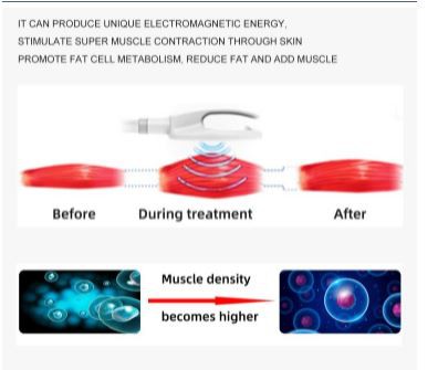 Muscle building beauty instrument, which uses the most advanced high-intensity focused magnetic vibration technology, directly stimulates motor neurons, so that the body's muscles continue to expand and contract(This kind of contraction cannot be achieved by your usual exercise or fit exercise)The energy pulse of 30 minutes treatment can stimulate 30000 strong muscle contractions,which help the fat cells to metabolize and decompose vigorously. At the same time, with muscle strengthening, it brings new technological experience for body shaping. It has won the international certification of CE, and its safety and effectiveness have been widely recognized.