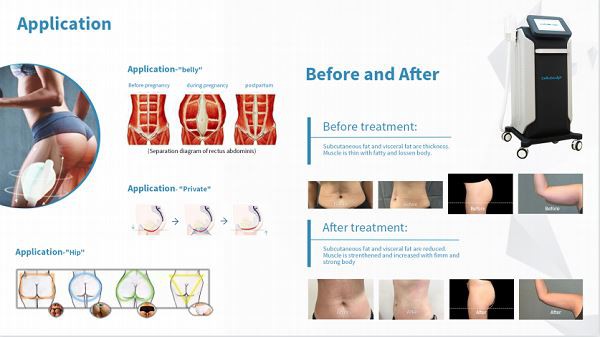 The extreme muscle contraction of HIFEM technology can trigger the strong decomposition of fat, fatty acids are decomposed out of triglycerides and accumulated in fat cells. Fatty acid concentration is too high, causing fat cells to apoptosis, within a few weeks by the body's normal metabolism excreted from the body. Therefore, this treatment can strengthen and increase muscle while reducing fat.