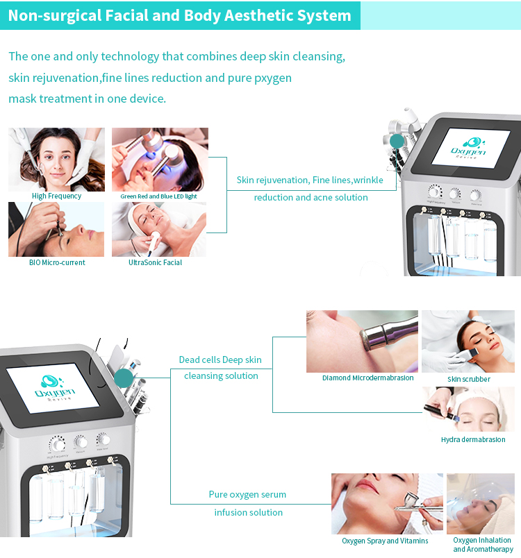 Sincoheren Oxygen Revive machine uses 9 types of technology and 11 handles,Compare with other similar products on the market,we add a pure oxygen mask which other company do not have. So as to achieve a variety of effects, deep care of your skin.