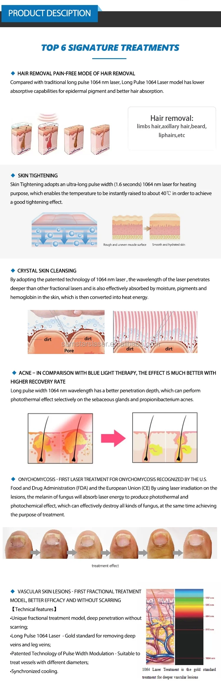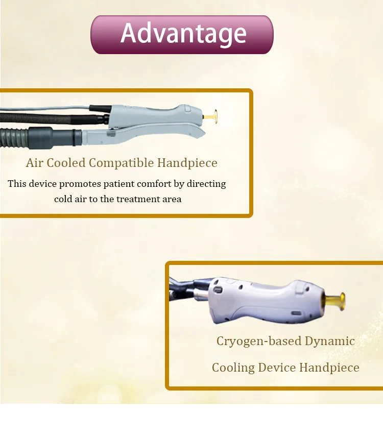 Features 1.10.4" TFT color touch screen, easy for operation 2.Handle, equipped with CPC instantly plugs, easy to install and removal, also separates the water circulation from electricity system, ensure the security of machine 3.Automatic self-test system and Modular Design of inner structure, ensures the machine’s stability and be more convenient for check and repairs 4.Strong cooling systems: Water+ wind+ semiconductor cooling, ensures 12 hours continuous work ; 5. Filter changeable E-light handle with 5 filters for different treatments 6. Warranty: 24 months