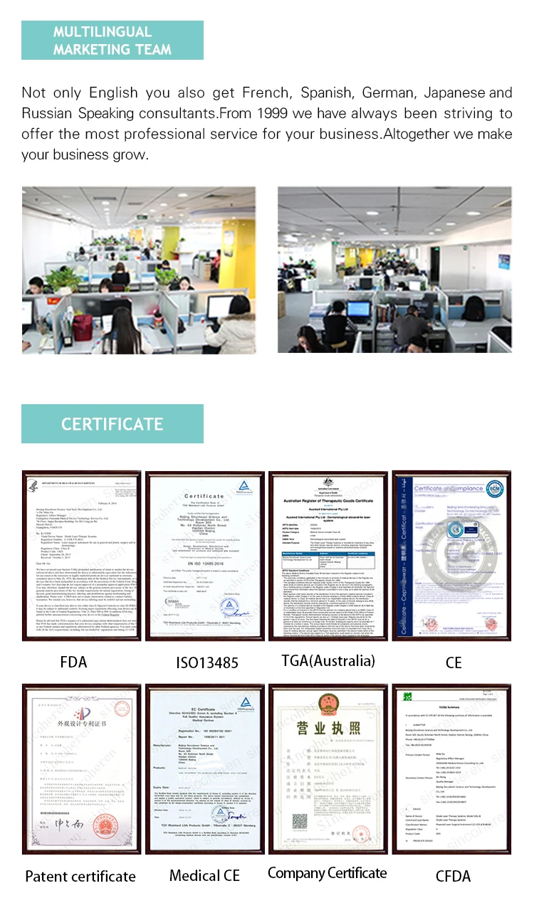 1 Free training with our professional doctors 2 Onlion support from saler 3 One year warranty 4 Free technical services for its whole lifetime 5 Support the picture which includes your logo