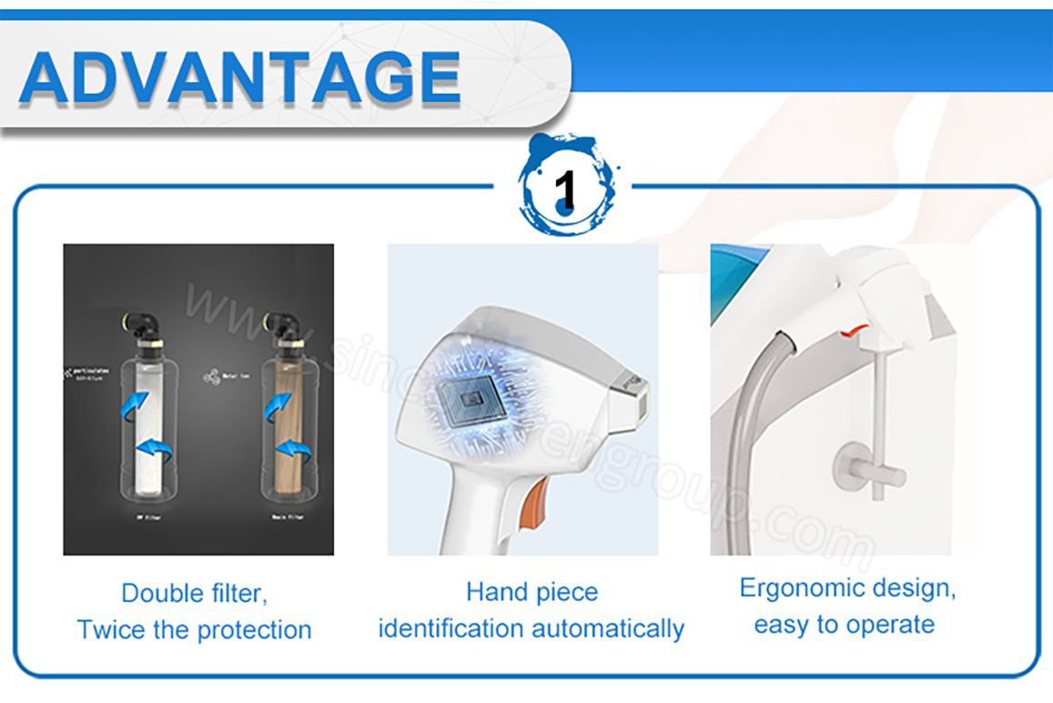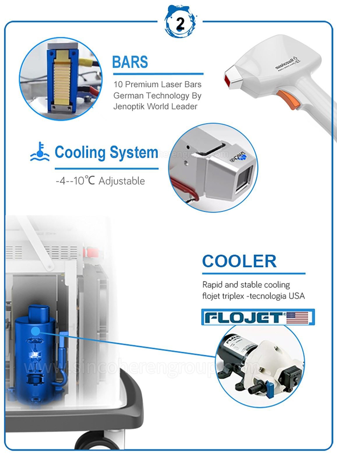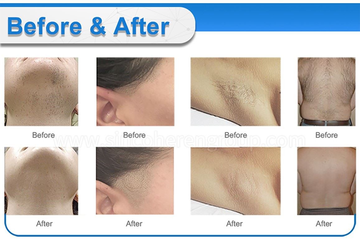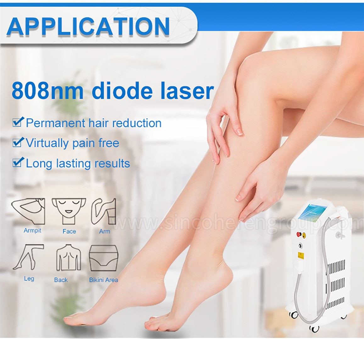 Basing on the selective light absorption theory, we let the diode laser generated by laser hair removal machine pass through the skin surface and penetrate the hair follicles by adjusting the wavelength, energy, and the pulse width to realize the hair removal purpose. In the hair follicle and hair shaft, there are plentiful melanin spreading between the follicle matrix and moving to the hair shaft structure. Once the melanin has absorbed the energy of laser, it will show a sharp rise in temperature and lead to destroy upon the surrounding follicle tissue. In this way, the unwanted hair will be removed completely.
