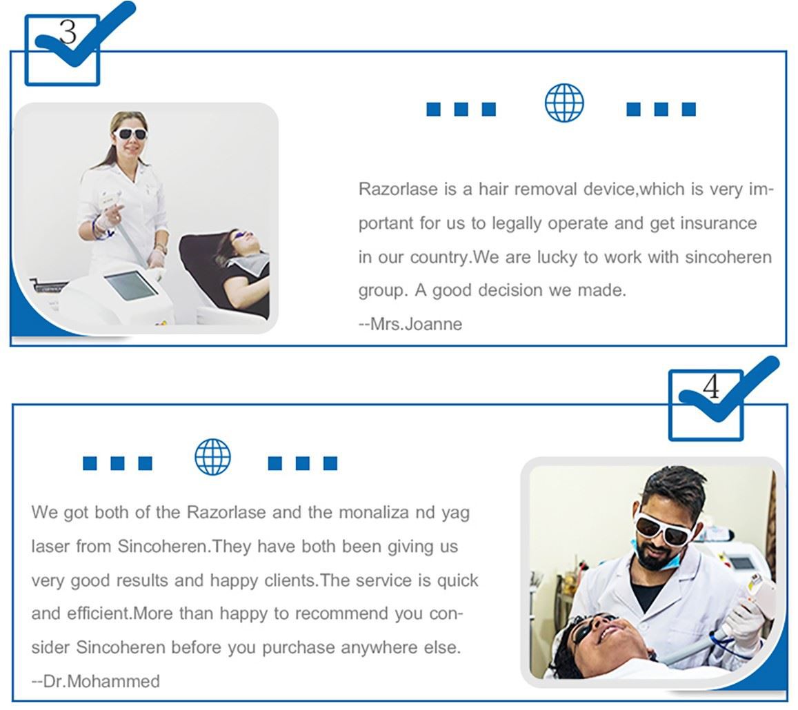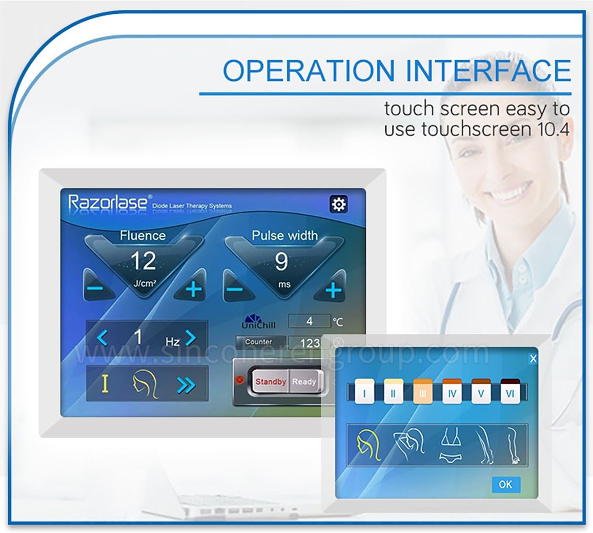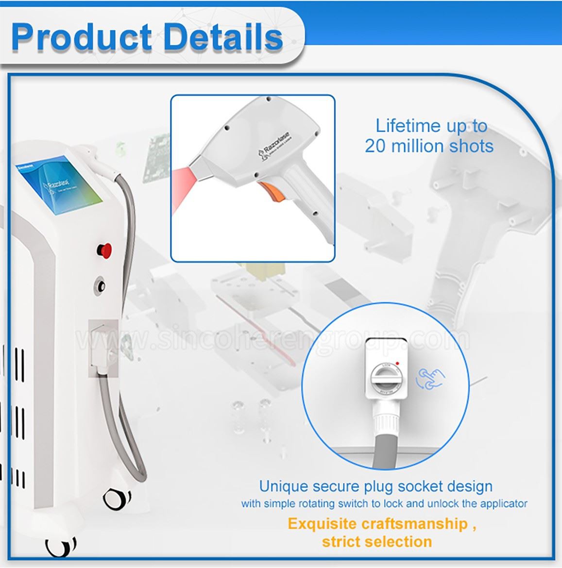 Basing on the selective light absorption theory, we let the diode laser generated by laser hair removal machine pass through the skin surface and penetrate the hair follicles by adjusting the wavelength, energy, and the pulse width to realize the hair removal purpose. In the hair follicle and hair shaft, there are plentiful melanin spreading between the follicle matrix and moving to the hair shaft structure. Once the melanin has absorbed the energy of laser, it will show a sharp rise in temperature and lead to destroy upon the surrounding follicle tissue. In this way, the unwanted hair will be removed completely.