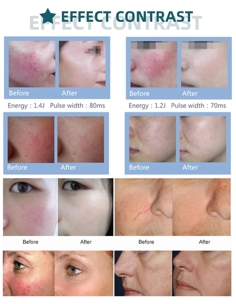RF high frequency vascular removal machine uses professional painless high-frequency technology, Micro-dot high-frequency electric flahes generate ultra-high-frequency electromagnetic oscillations of 13.56 million hertz. The extremely high frequency density can thermally coagulate the expanded capillaries within milliseconds. The hemoglobin and endothelial celles in the blood vessel immediately close the dilated blood vessels, which fundamentally treats telangiectasia. The instrucment uses a professional treatment pen, the diameter of the treatment end is only 0.1mm, so the damage to the epidermis during operation is negligible. Based on the skin's self- repairing and regenerating new skin tissue, and achieving the effect of eradicating read blood cells in one go.