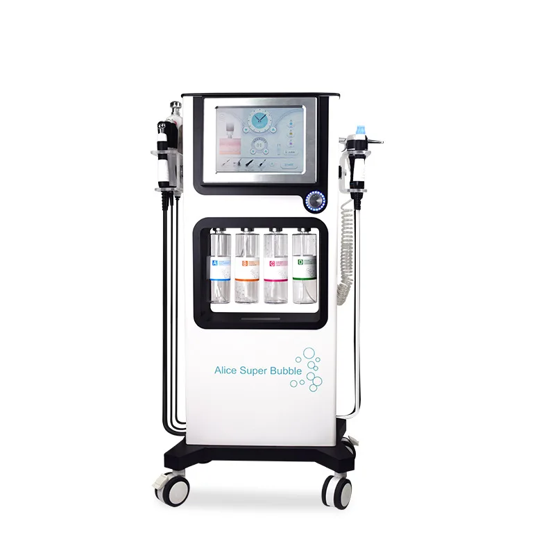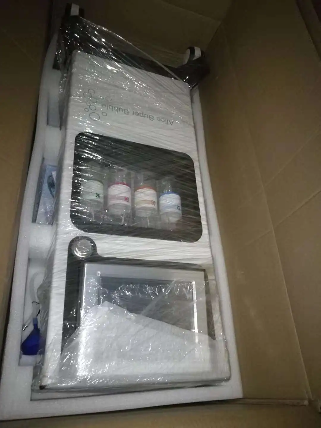 The water & oxygen jet facial machine uses oxygen under extreme pressure and water, takes tiny water drops, through spray-type to act on skin. It can penetrate nutrient components to pores and cracks of skin from the epidermis to dermis layer, then promote rebirth of cells, rapidly and directly supply rich nutrient for skin. Simultaneously, it can clear deep dirt in epidermis. Oxygen of extreme pressure and nutrient liquid can stimulate the rebirth of fiber tissue in dermis, make cells metabolism. So as to improve skin dark, yellow, chloasma, get good effect of wrinkle removal, skin rejuvenation and etc. It can treat :Blackhead Acne, Stain, Pouch Removal, Dried-up, Wrinkle, Forehead, Moisturizing, Rough, Dull, Loose, Skin whitening