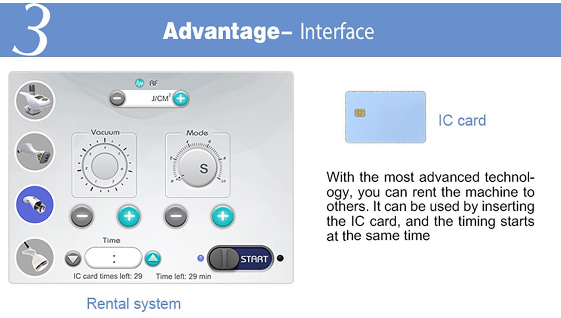 2) Vacuum plus specially designed rollers manipulate leads RF penetration to be even 5-15mm. At the same time, vacuum and roller mechanical tissue manipulation nips and stretches fibrillar connective tissue, effectively breaks down subcutaneous fat as well as extruded capillary vessel, Increase lymphatic drainage, promotes metabolism and reduces or shrinks the size of the actual fat chamber and greatly improved body contouring effect.