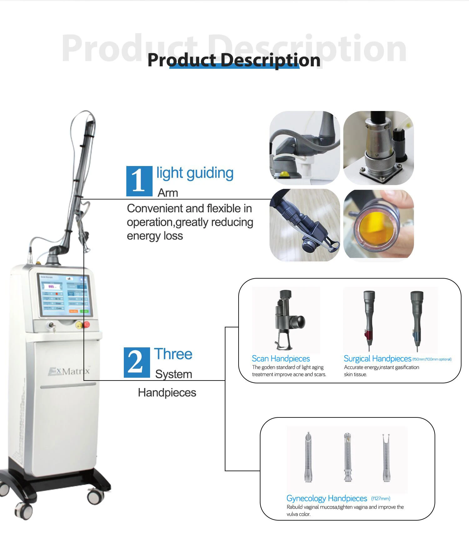 Monaliza-5 Fractional 10600nm Laser, is a CO2 laser therapy system with a wavelength of 10600mn, that uses selective pho-thermal decomposition principles. With an optimal mix of ablative and thermal effects and an array of applicators and treatment modes for highly tailored procedures, CO2 Diamond brings unparalleled precision and innovation to the field of dermatology and plastic surgery. Vertex Lasers’ CO2 Diamond is a highly flexible system for char-free tissue ablation, excision, incision and coagulation of soft tissue. It allows physicians full control of treatment parameters, including level and depth of ablation and thermal effect via pulse duration and mode of energy delivery. This versatility maximizes precision and treatment results while minimizing unnecessary tissue damage.