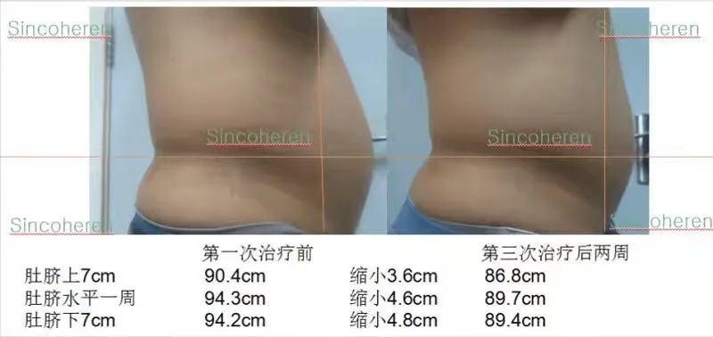 As triglyceride in fat can be converted into solid in particular low temperature, it uses advanced cooling technology to target fat bulges selectively and eliminate fat cells through a gradual process that does not harm the surrounding tissues, reduce unwanted fat . When fat cells are exposed to precise cooling , they trigger a process of natural removal that gradually reduces the thickness of the fat layer ,and the fat cells in the treated area are gently eliminated