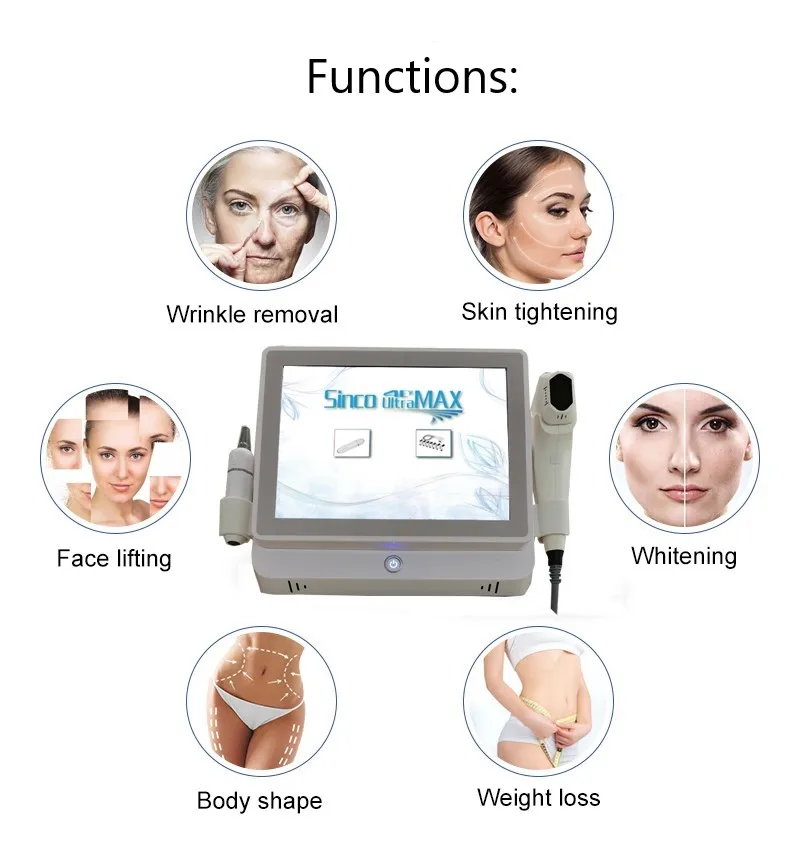 4D HIFU machine is the ultrasonic focusing reaches the SMAS layer with its specific high energy focused ultrasound, improves the SMAS suspension, comprehensively solved the facial sagging and relaxtion problems. It accurately positions the ultrasonic power on the SMAS 4.5mm under skin, performing the best effect of shaping, pulling and compacting for muscle growth and traction; impacts on the collagen layer 3mm under skin, making the collagen restructured and newborn, solving the aging problems by recoving elasticity,skin whitening, wrinkle removal and pores shrinking.