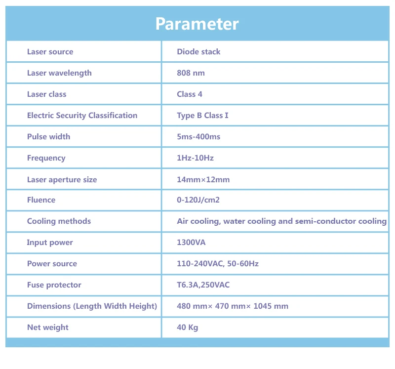 Laser pulse duration is 20ms to 1000ms adjustable, which treats different hair effectively and permanently.
