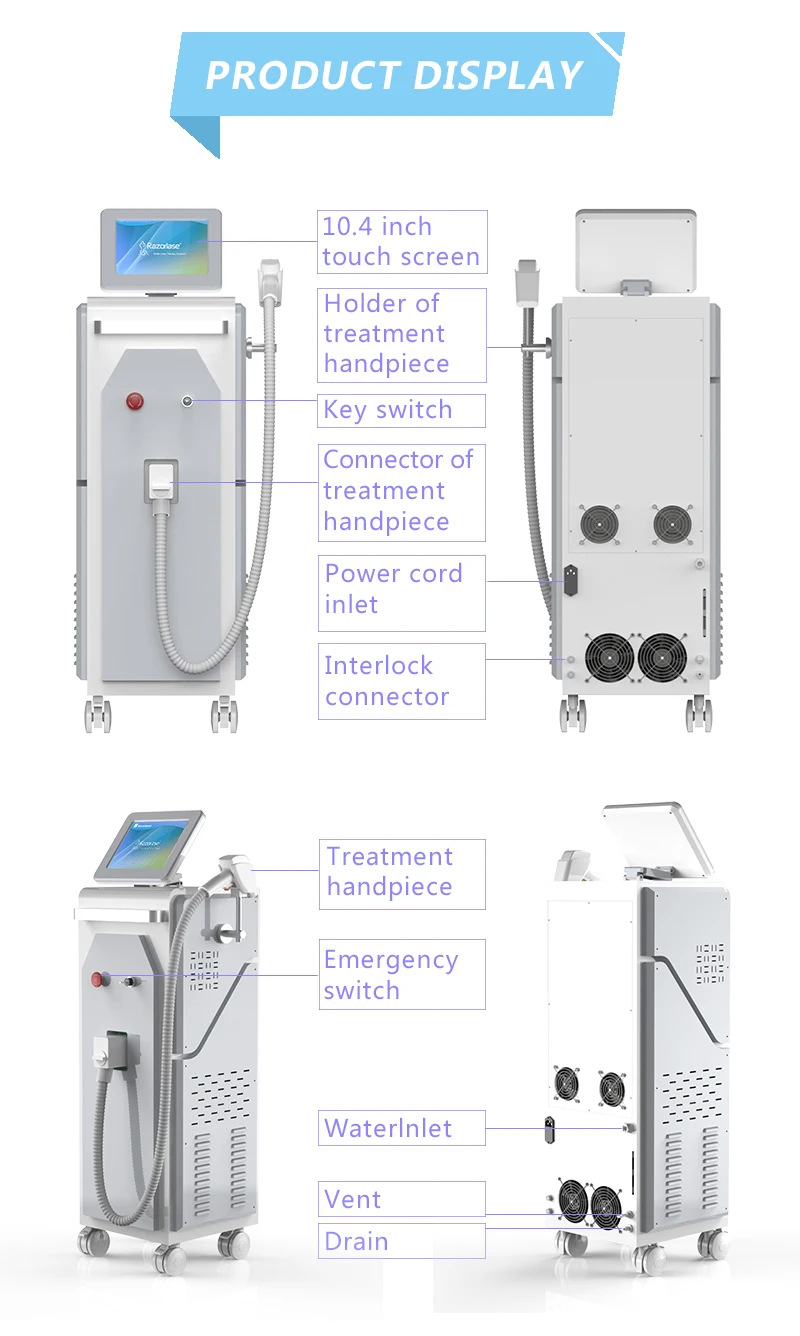 808nm Diode Laser Hair Removal System utilizes penetrating technology to make skin absorb less laser energy without pigment accumulation.