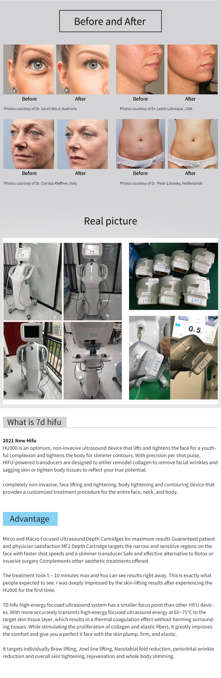 MulHifu face lifting Machines, A HIFU stands for High-Intensity Focused Ultrasound. It has recently been growing in popularity due to the increased demand for achieving significant non-invasive skin lifting and tightening. The HIFU also helps with reducing the appearance of excess fats on areas such as the jowls, double chin and cheeks.