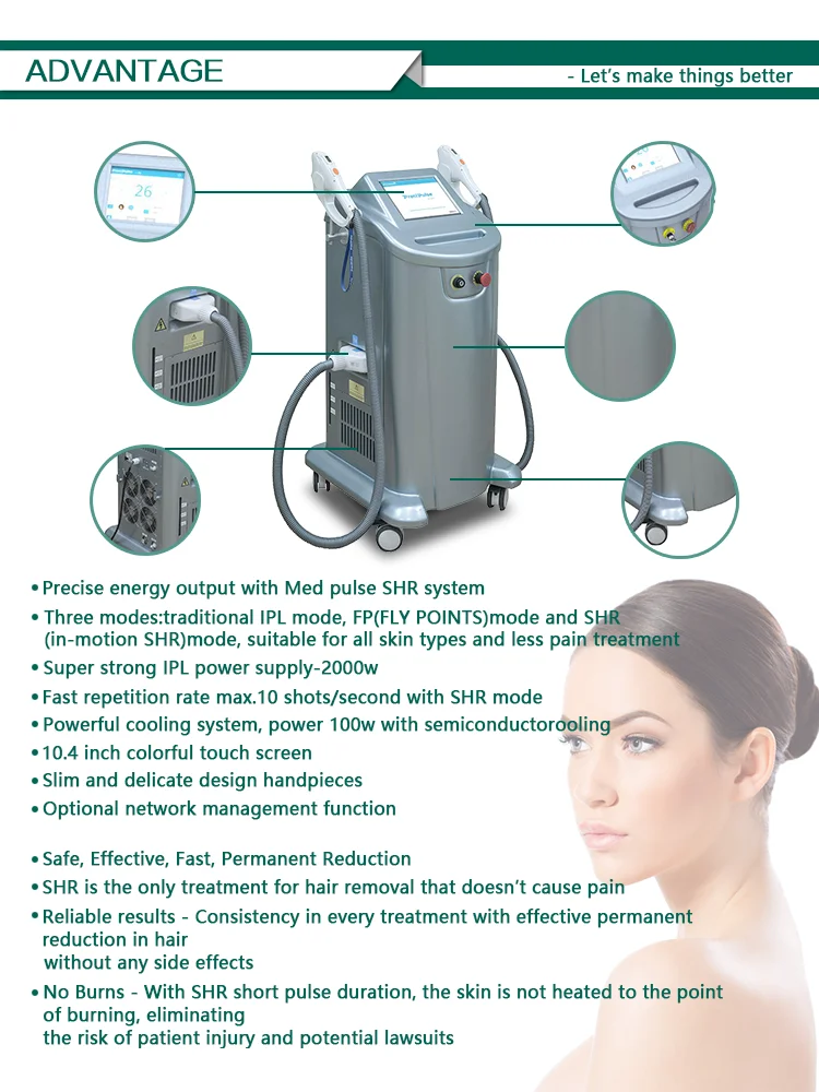 *3 treatment modes, traditional IPL, FP (FlY POINTS) mode, SHR mode for different diseases