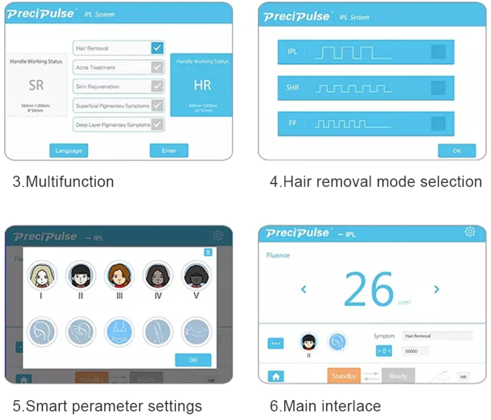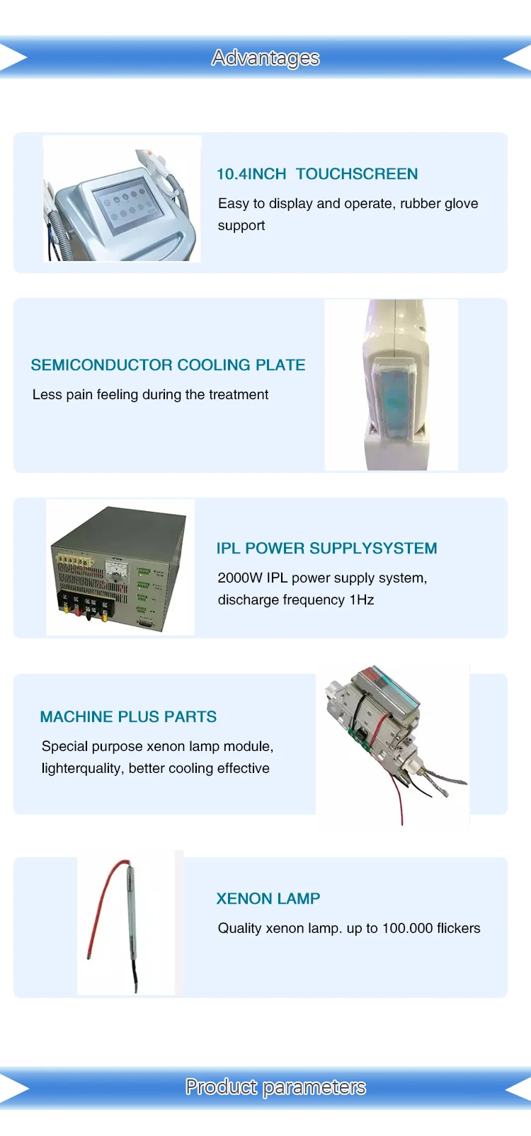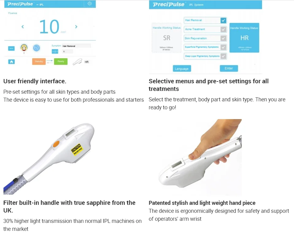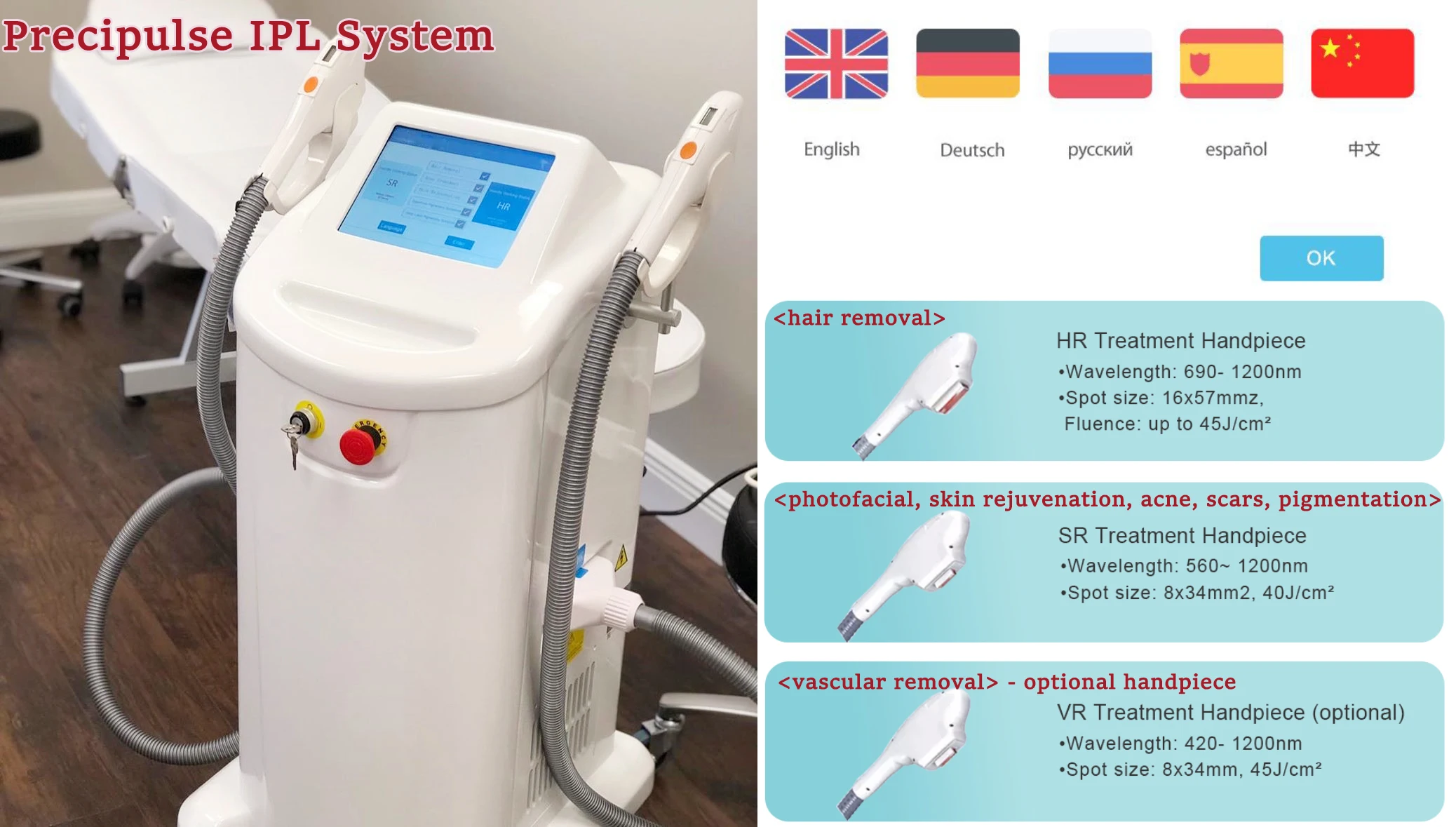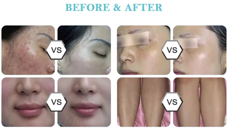 560-1200nm Reduce and remove pigmented lesions e.g. freckles, age spots, sunburn spots; reduce wrinkles; shrink pores, rejuvenate