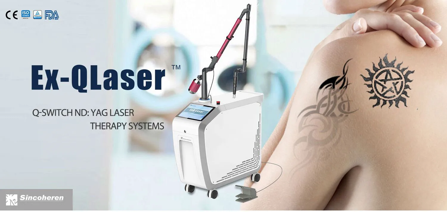 *ExQ-Laser is newly released Q-Switched Nd:YAG laser therapy system.The systemhas an optimal clinical treatment effect with following parameter designs:dual-wavelength switching of 1064nm&532nm,pulse width short to 5ns and Energyoutput up to 1000mJ.